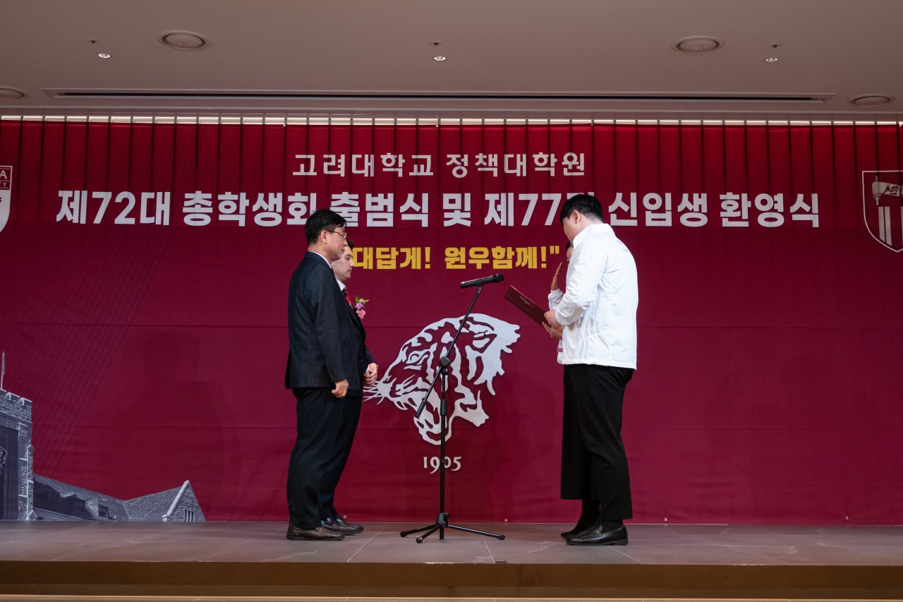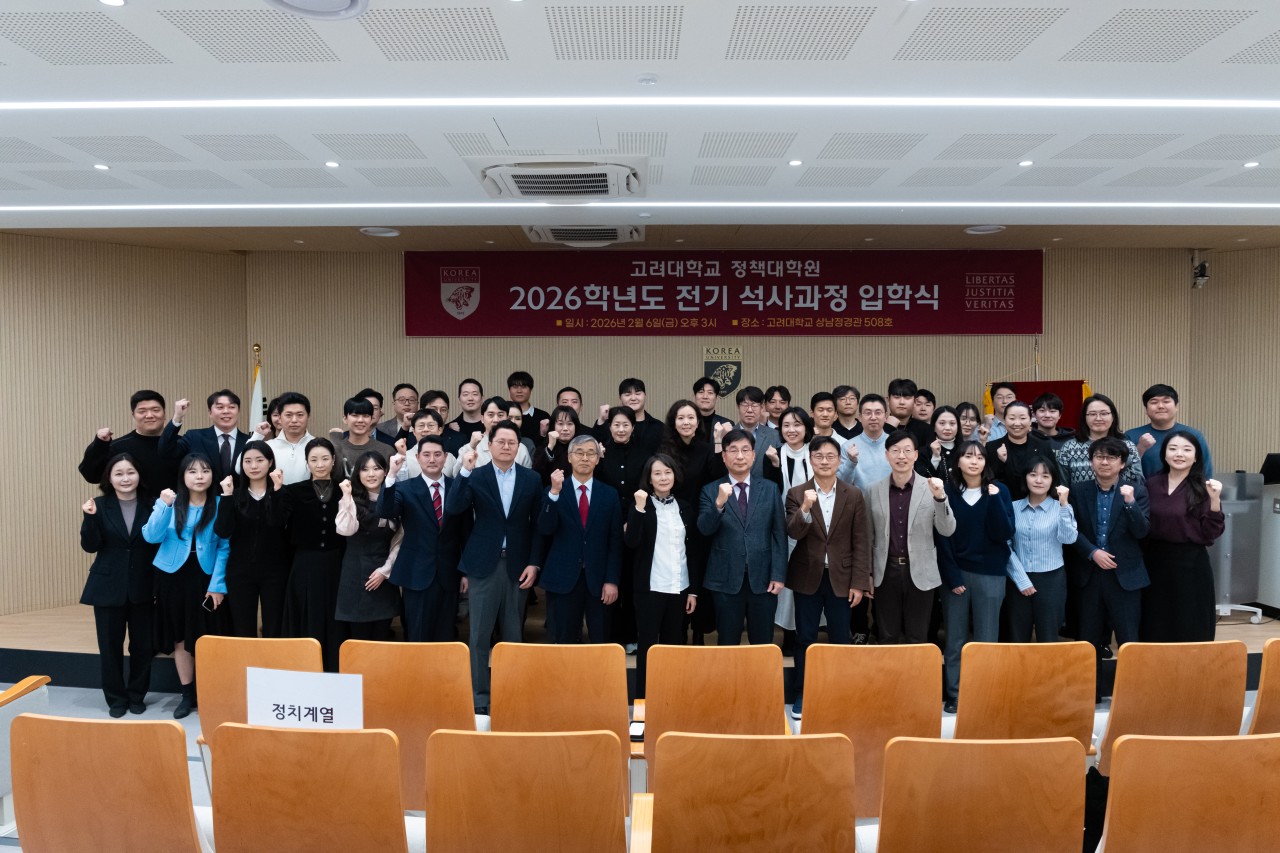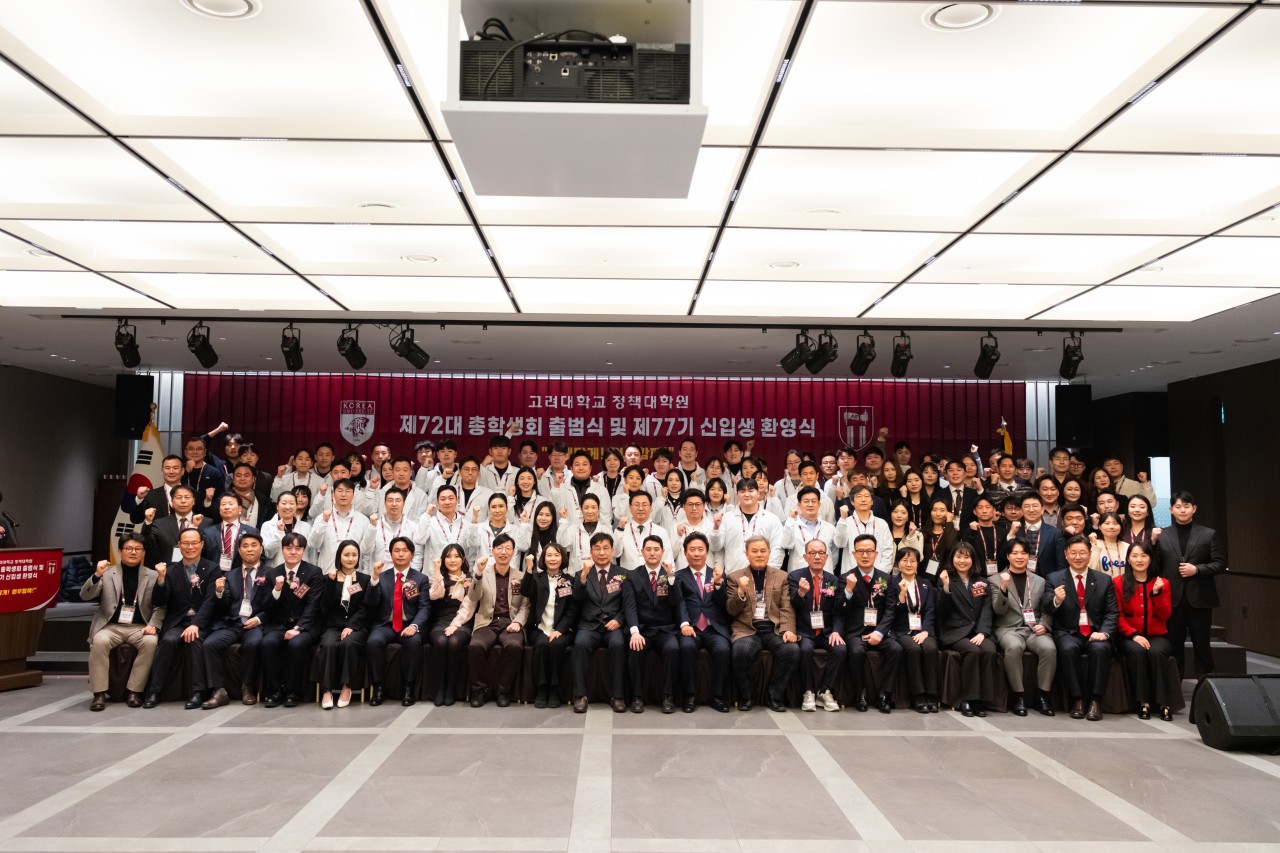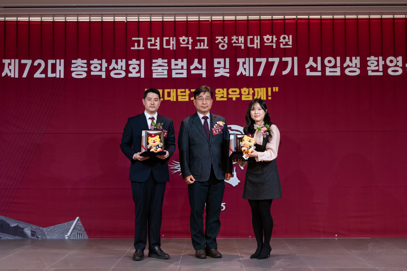 [고려대학교 정책대학원 제72대 총학생회 출범식 및 제77기 신입생 환영식] ■ 일시 : 2026년 2월 6일(금) 18:00 ■ 장소 : 고려대학교 정책대학원 교우회관 안암홀 안녕하십니까. 고려대학교 정책대학원 제72대 총학생회장 서동현입니다. 지난 2026년 2월 6일(금)에 개최된 「제72대 총학생회 출범식 및 제77기 신입생 환영식이 여러 원우 여러분과 내외빈 여러분의 성원 속에 성황리에 마무리되었음을 기쁘게 보고드립니다. 바쁘신 가운데도 자리를 빛내주신 원장님과 주임교수님, 교우회 선배님들, 그리고 동기 및 후배 원우 여러분께 깊은 감사의 말씀을 드립니다. 아울러 부득이 참석하지 못하셨으나 마음으로 함께해주신 모든 분들께도 진심 어린 감사의 뜻을 전합니다. 이번 행사가 제77기 신입생 여러분께 뜻깊은 시작의 자리가 되었기를 바라며, 모든 원우 여러분께도 소중한 교류와 화합의 시간이 되었기를 희망합니다. 제72대 총학생회는 이날 보내주신 격려와 기대를 소중히 간직하며, 앞으로도 소통과 배려, 화합을 바탕으로 원우 여러분과 함께하는 학생회가 되도록 최선을 다하겠습니다. 다시 한 번 보내주신 따뜻한 축하와 성원에 깊이 감사드립니다. 개강 후 교정에서 다시 인사드리겠습니다. 감사합니다. 고려대학교 정책대학원‘고대답게! 원우함께!’제72대 총학생회 총학생회장 서동현, 부총학생회장 김수연 드림